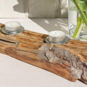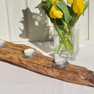 Ein wunderschöner und einzigartiger Kerzenhalter aus einem Wurzelstück gefertigt, welches als Treibgut gesammelt wurde.