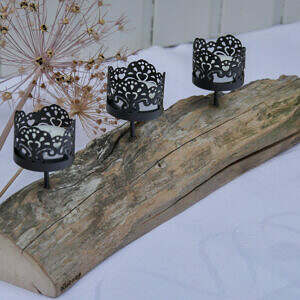 Ein toller Teelichthalter aus einem tollen Stück Treibholz, welches durch die skandinavische Sonne ergraut ist.
