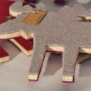 Nachdem der Elch ausgeschnitten wurde, wurde das Holz beidseitig mit Vlies beklebt.